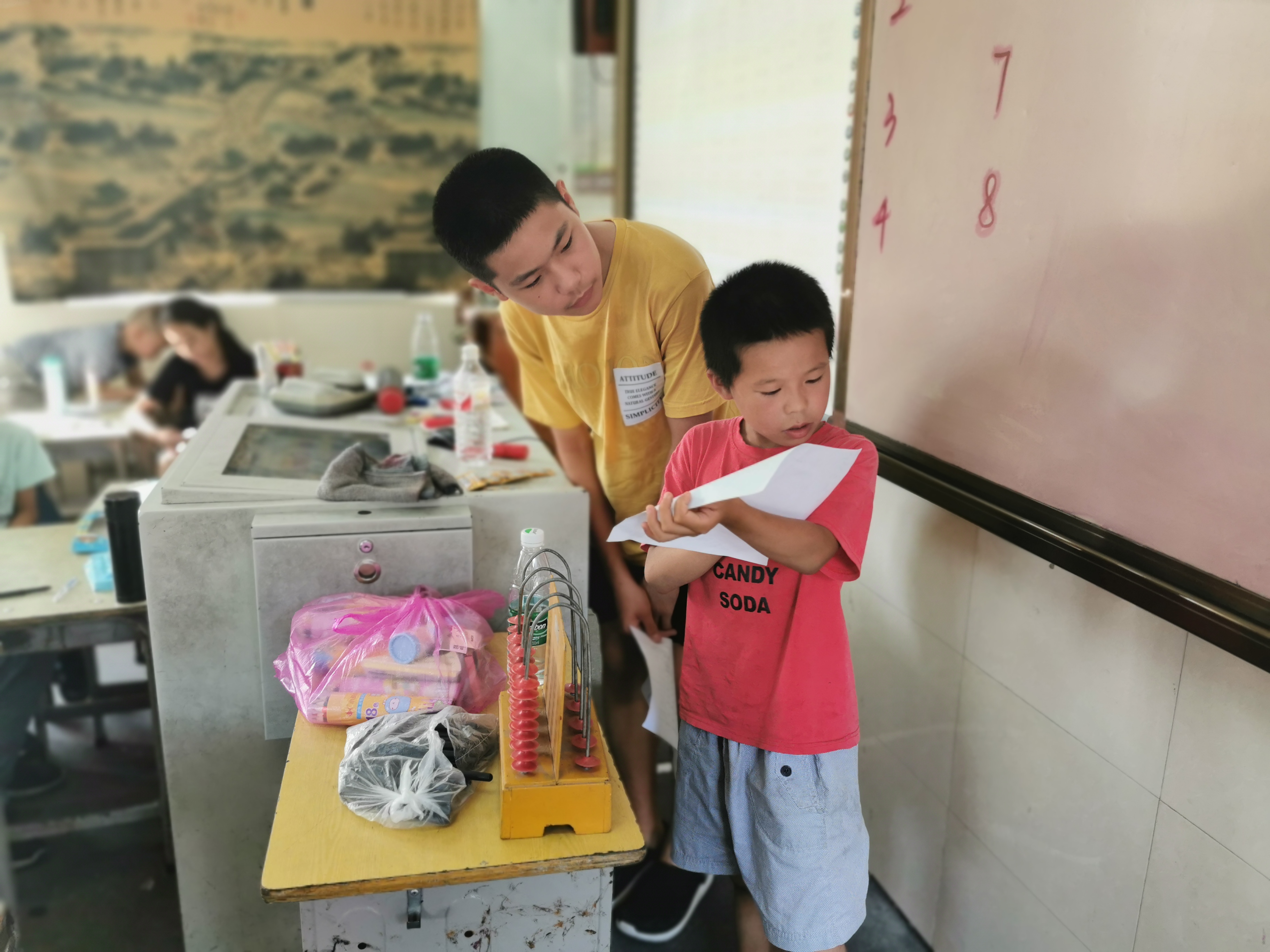 百越灵川小分队 海洋乡中心校 初中生耐心引导小学生分享自己的成果