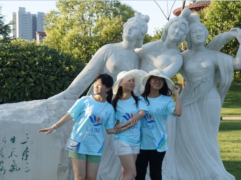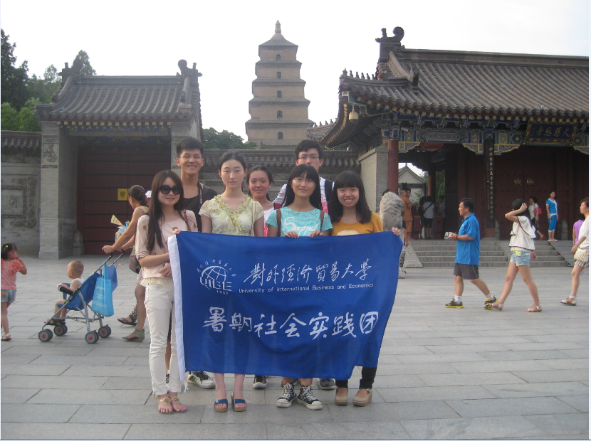 队员们在大雁塔前合影 古韵长安实践队 刘一婧 国际经济贸易学院